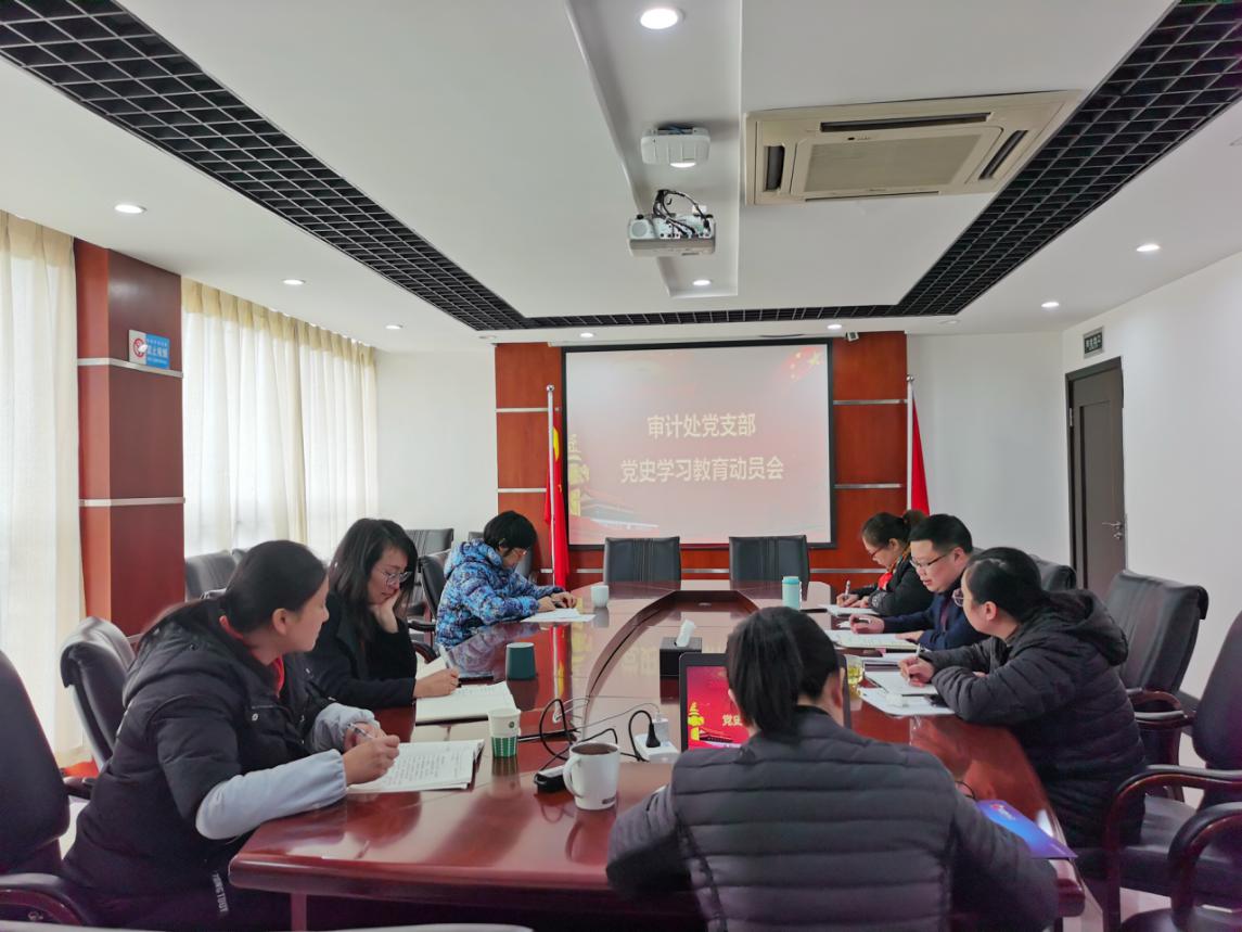 党支部书记姚世斌同志强调,要严格按照中央、省委和学校党委要求,认真开展党史学习教育,坚持以马克思列宁主义、毛泽东思想、邓小平理论、“三个代表”重要思想、科学发展观、习近平新时代中国特色社会主义思想为指导,深入学习贯彻党的十九大和十九届二中、三中四中、五中全会精神,全面落实中央省委重大决策部署,紧紧围绕学懂弄通做实党的创新理论,坚持学习党史与学习新中国史、改革开放史、社会主义发展史相贯通,做到学史明理、学史增信、学史崇德、学史力行,增强“四个意识”、坚定“四个自信”、做到“两个维护”,不断提高政治判断力、政治领悟力、政治执行力,学党史、悟思想、办实事、开新局,在新的历史起点推动学校内部审计高质量高水平发展,为推动学习治理能力提升做出更大贡献。支委要认真组织好本部门党史学习教育活动开展,领导干部要带头学,全处教职工应紧密结合实际,突出审计特色,扎扎实实开展好党史学习教育,有序推进每个步骤,纪检委员加强学习督导检查,提高学习教育针对性和实效性。